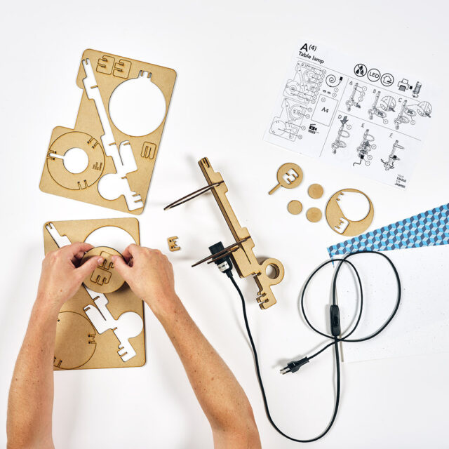 De A(4) tafellamp wordt geleverd als bouwpakket dat u zelf in elkaar zet. Maar maak je geen zorgen: alles wat je nodig hebt zit in de doos, inclusief een duidelijke handleiding. Met deze handleiding kost het in elkaar zetten van de lamp je hooguit een paar minuten!