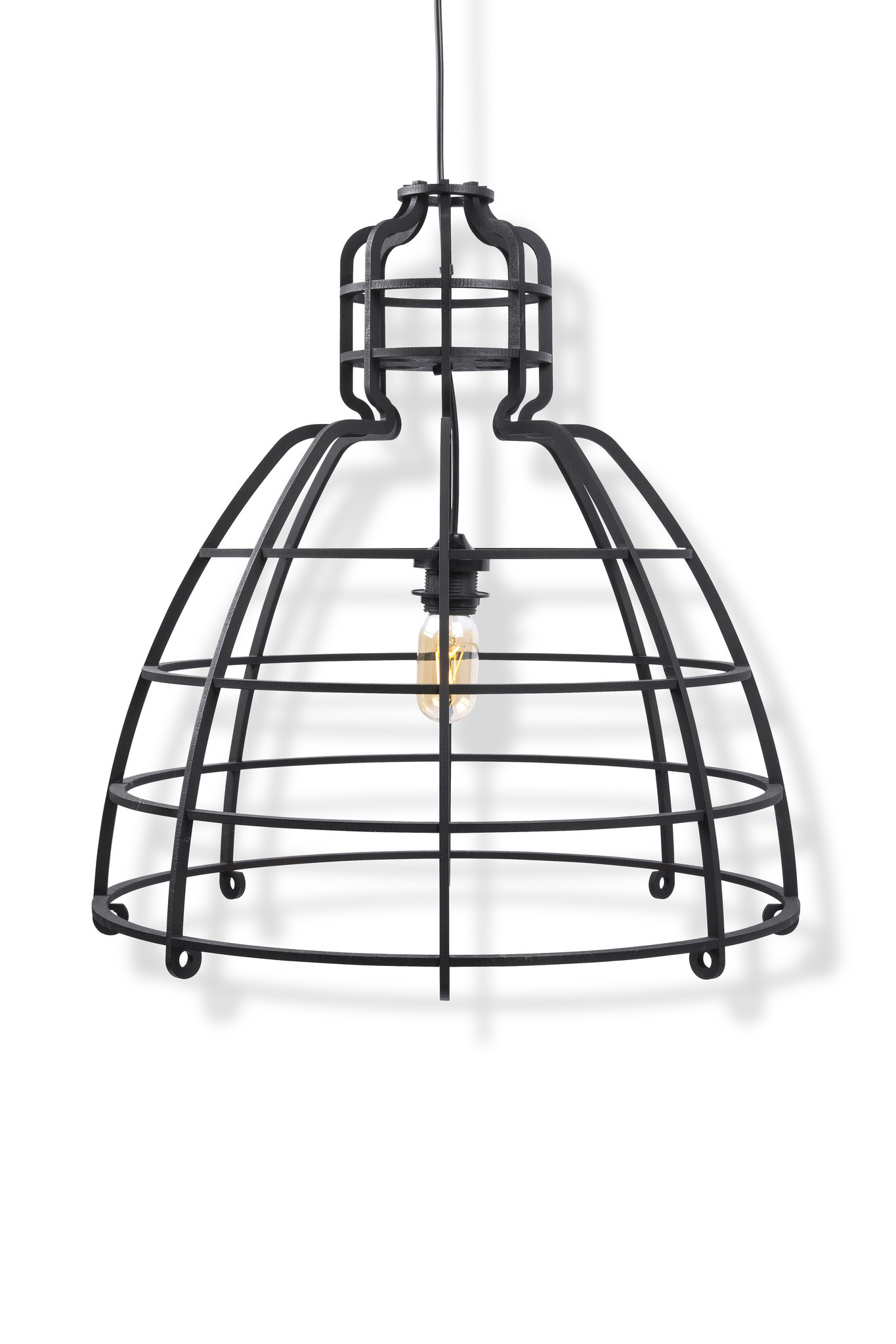 De kap van deze stoere industriële lamp heeft een diameter van 50 centimeter en een hoogte van 53 centimeter. Doordat de lichtbron duidelijk te zien is, wat een bijzonder mooie lichtval geeft zou je kunnen kiezen voor een kooldraadlamp (fitting E27) voor extra effect.