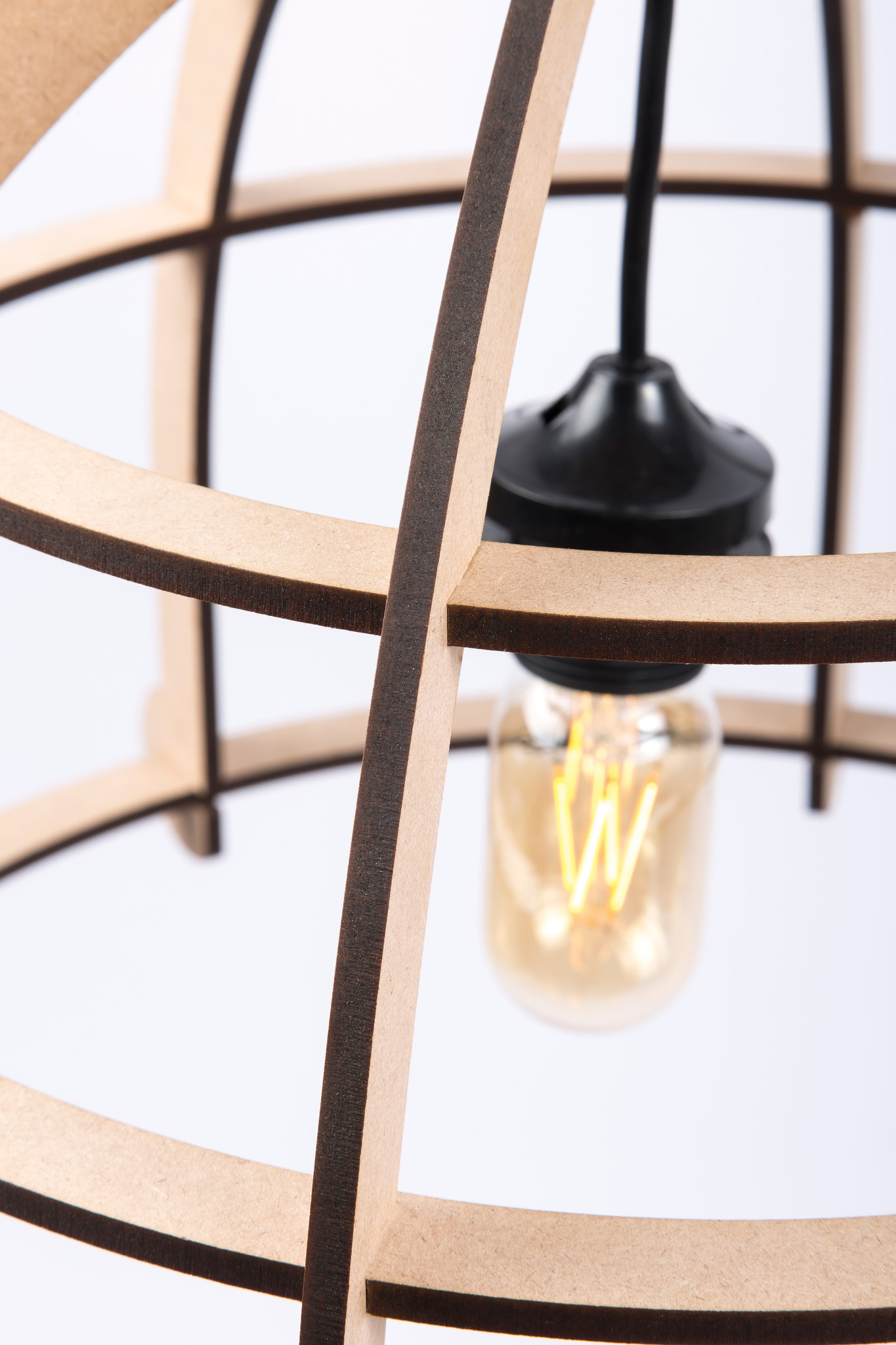 De lampen zijn uitgesneden uit 6 mm MDF platen. De in huis gemaakte ontwerpen worden door onze lasermachines met hoge precisie uitgesneden.