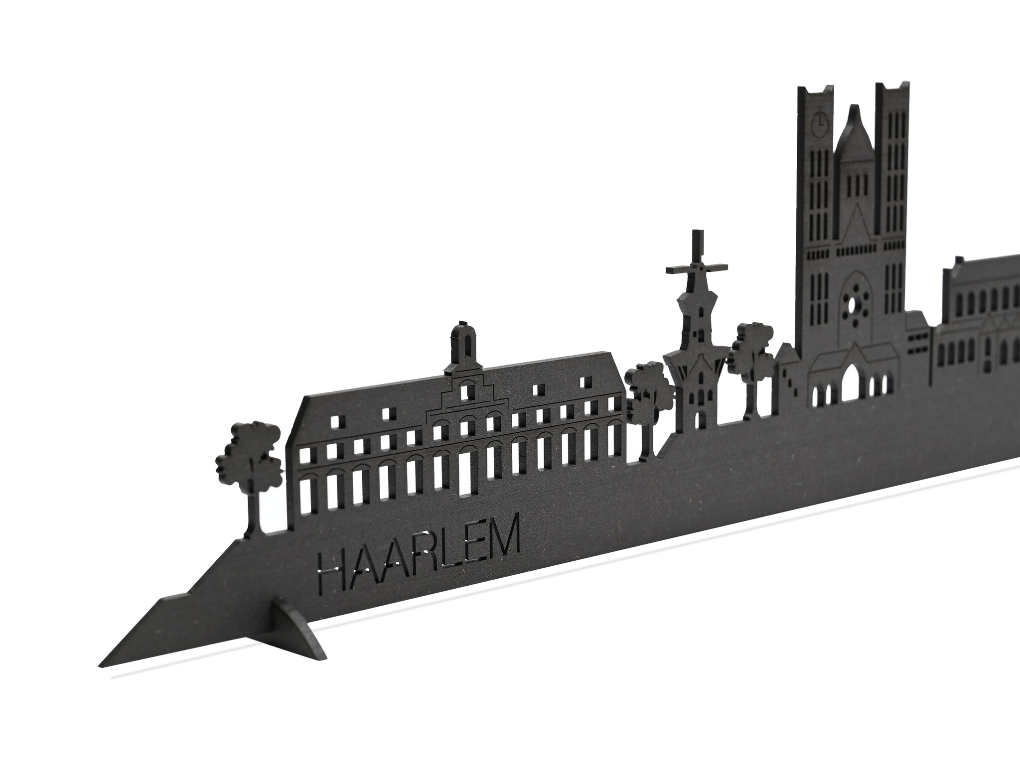 De skyline van Haarlem bestaat uit een aantal herkenbare iconen zoals: de kathedrale basiliek Sint-Bavo, de grote kerk, Frans Hals museum, de Amsterdamse Poort, de koepel en Molen De Adriaan.